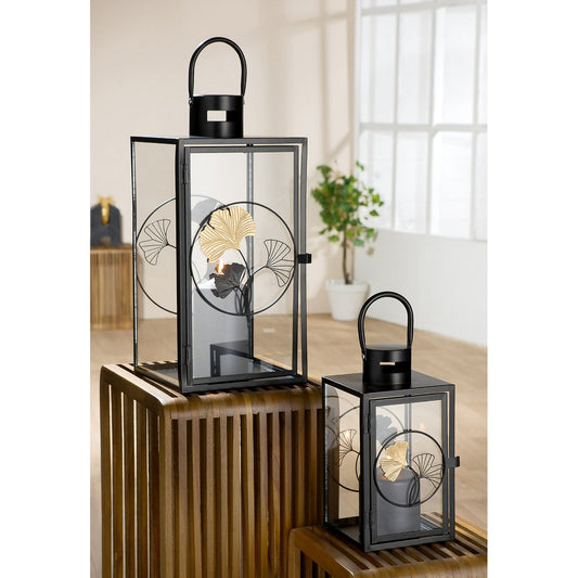 2er Laternen Set Ginkgo H19cm Schwarz Gold Metall 2-teilig Modern Dekoration