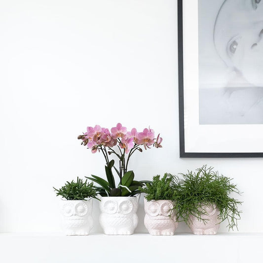 Kolibri Home | Charmante Eulenfigur Blumentopf Weiß Ø9cm – Keramik Ziertopf