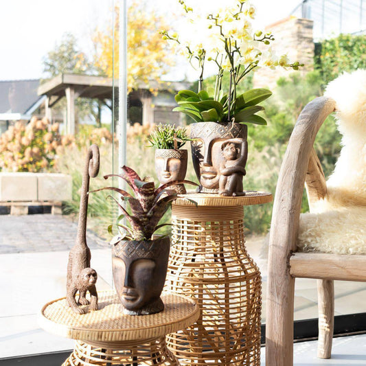 Kolibri Home | Skulptur Sitzender Affe in Braun - Charmanter Akzent für Pflanzendeko Dekoration Braune Affenstatue
