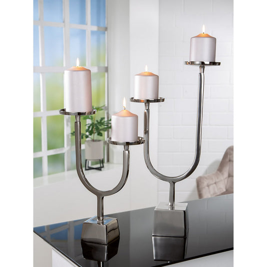 Kerzenständer Design H55cm Aluminium Silber Modern Doppelarm Eleganter Kerzenhalter Dekoration