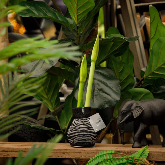 Amaryllis NoWater Rote Blumen Animal Print Stoffhüllen - Pflegeleichte Blühende Zimmerpflanze in 3 Designs (Zebra, Leopard oder Gepard Muster)