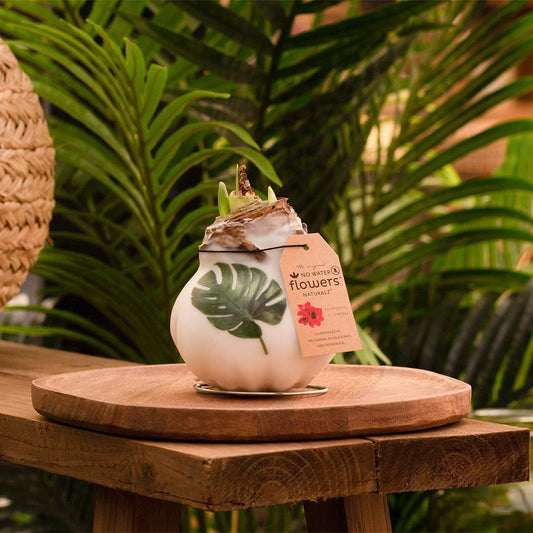 Amaryllis No Water weiße Blumen mit Botanik Pflanzen Design - Pflegeleichte Zimmerpflanze in 3 Motiven - Monstera Farn Palme Motiv Weiß