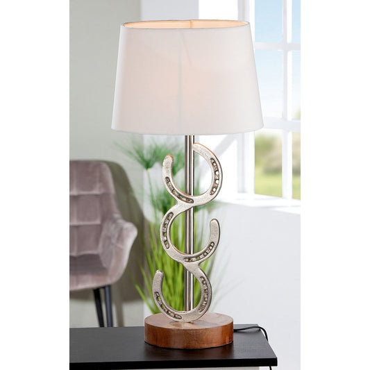 Tischlampe Hufeisen H50cm Silber Holz Vintage Landhaus Dekoration