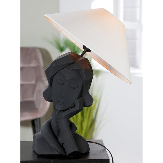 Tischlampe Design Büste H50cm Schwarz Matt mit Schirm Modern Dekolampe