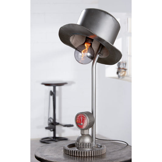 Tischlampe Zylinder H68cm Industrial Silber mit Vintage Tacho Retro