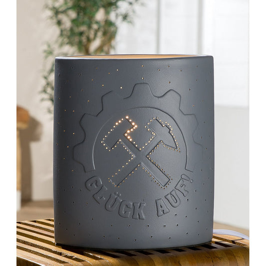 Tischlampe Industrial H21cm Grau Bergbau Design Vintage Retro Glück Auf Handwerker Dekoration