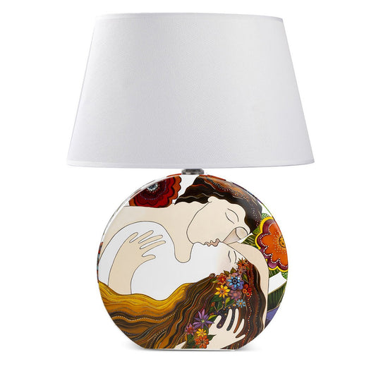 Tischlampe Design Kunst H47cm Bunt mit Schirm Keramik Modern Erster Kuss Liebesmotiv Dekoration