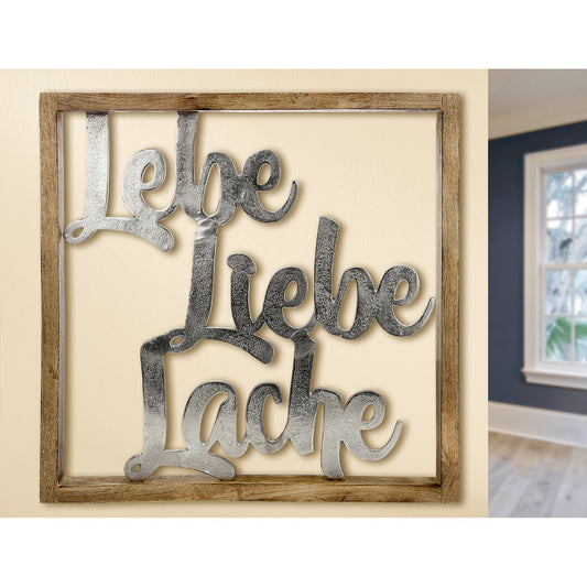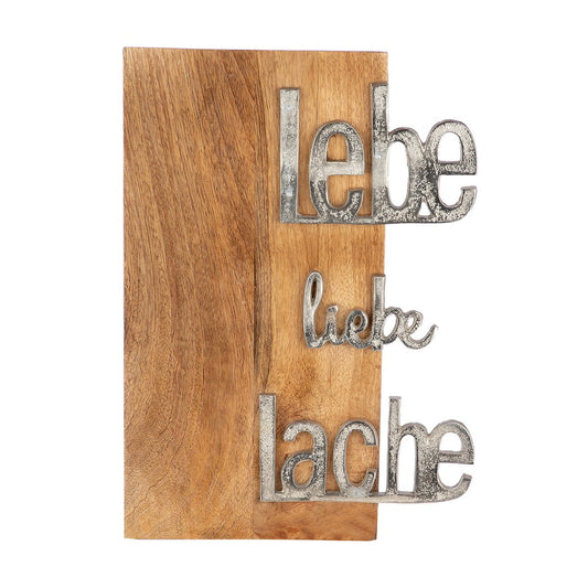 Wandbild Lebe Liebe Lache H45cm Holz Silber Vintage Landhaus Wanddekoration