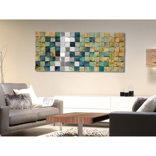 Wandbild 3D Holz 123x55cm Modern Mosaik Türkis Silber Handgefertigt Wanddekoration
