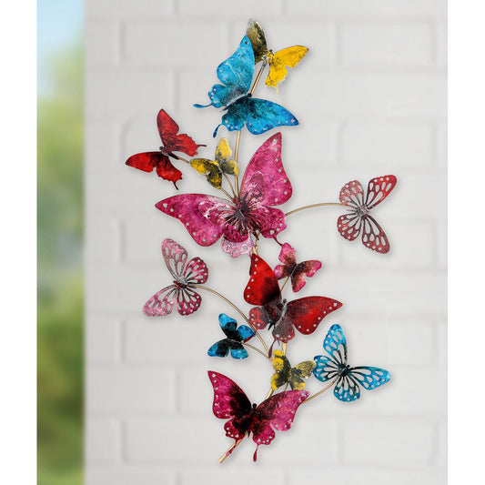 Wanddeko Schmetterlinge H66cm Metall Bunt 3D Wandrelief Modern Wanddekoration