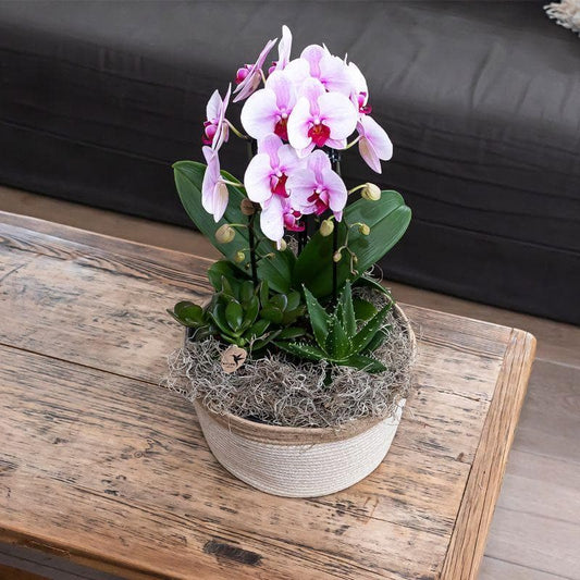Kolibri Company | Phalaenopsis Orchidee Lausanne & Sukkulenten im Keramik-Zierpflanztopf – Pflanzenset 'Slow Living' – Zimmerpflanzen online kaufen