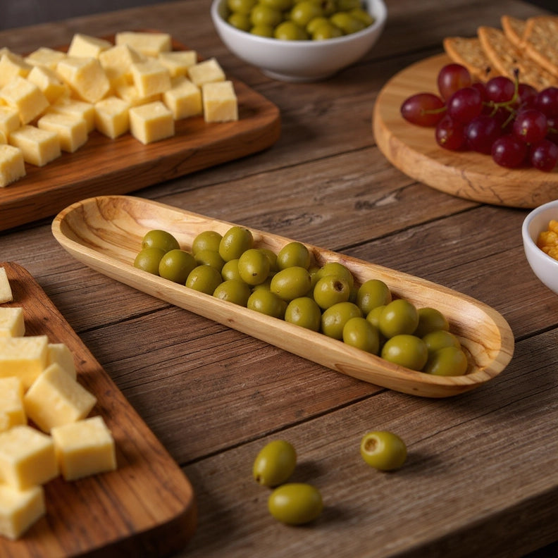 Mediterranes Servieren leicht gemacht – mit dem Olivenschiffchen (ca. 25 cm) aus Olivenholz bringst du Stil und Natürlichkeit auf den Tisch. Das schmale, längliche Schälchen eignet sich ideal zum Anrichten von Oliven, Kirschtomaten, Datteln, Tapas oder kleinen Snacks. Die elegante Form erinnert an ein Boot – funktional und dekorativ zugleich.