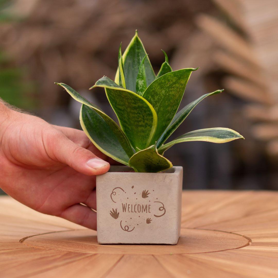 - 1x Congreetz® Betontopf mit "Welcome" Gravur