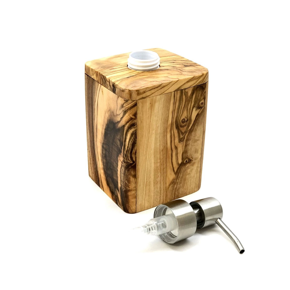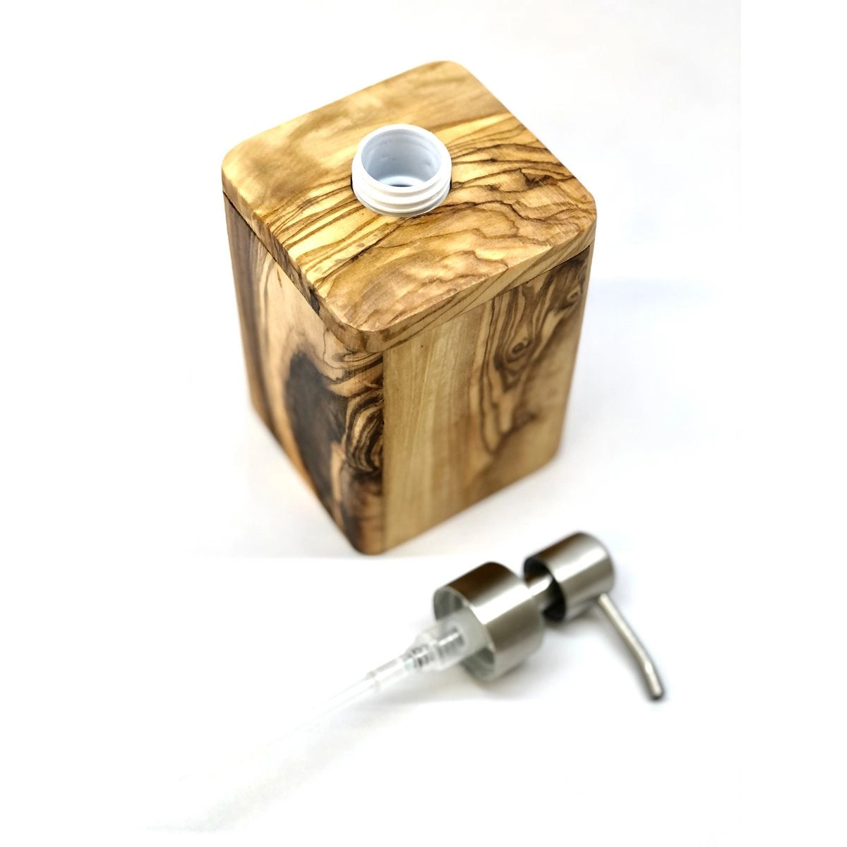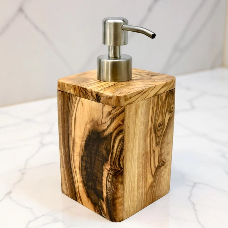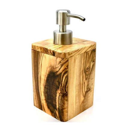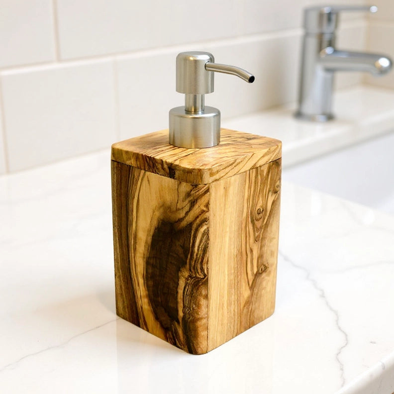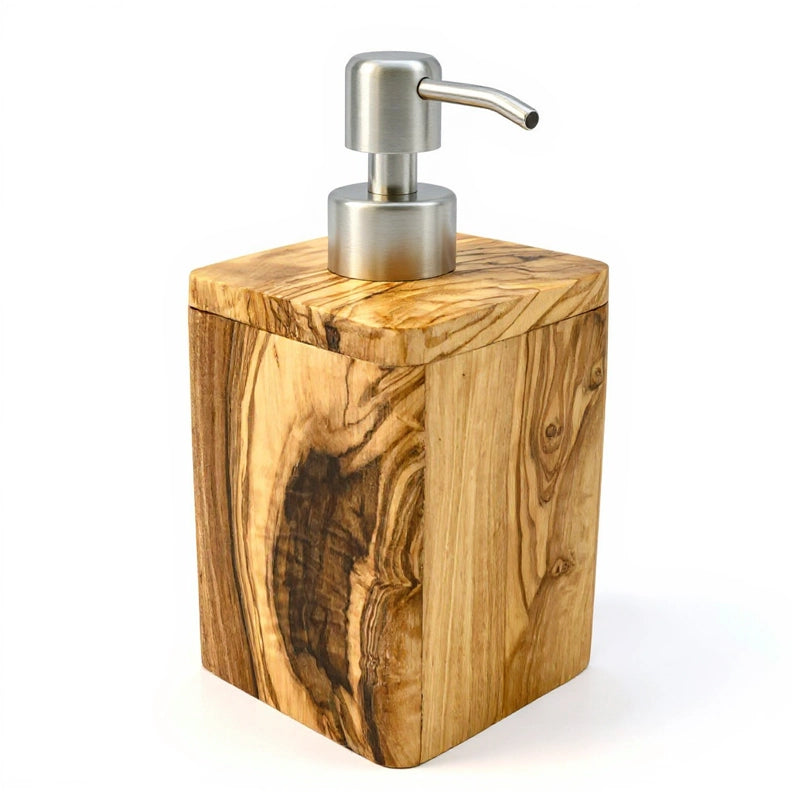 Seifenspender ENJOY 17 cm mit Edelstahlpumpe aus Olivenholz – stilvolles Olivenholzprodukt