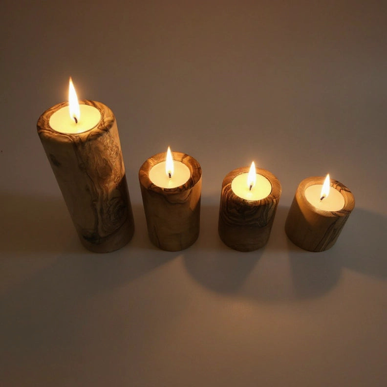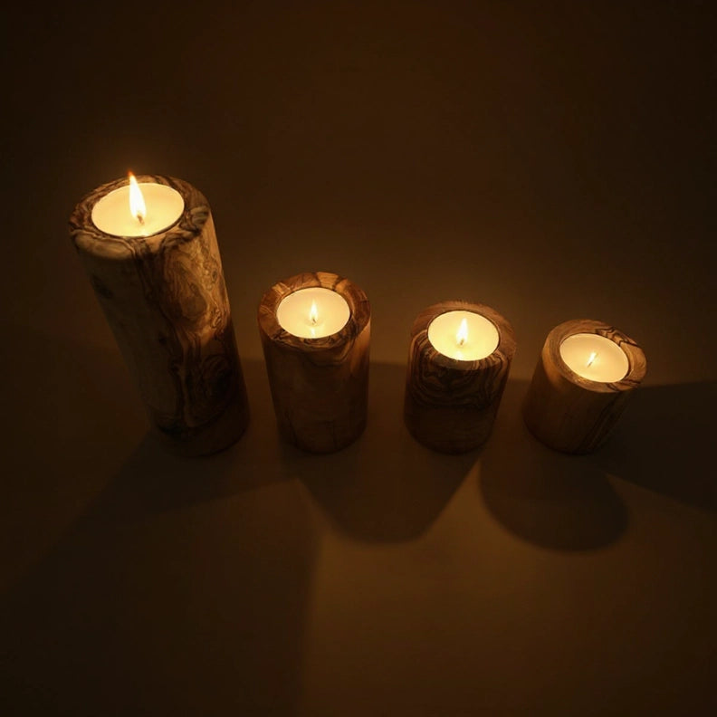 Teelichthalter 4er Set aus Olivenholz – stimmungsvolles Olivenholzprodukt